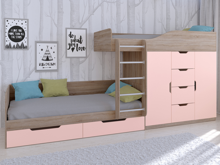 Отзывы о Столплит Кровать двухъярусная Астра 6 Дуб Сонома Розовый