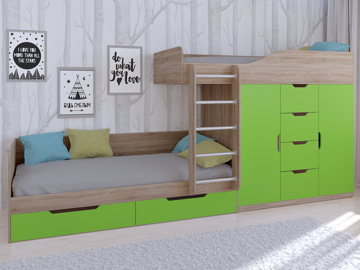 Отзывы о Столплит Кровать двухъярусная Астра 6 Дуб Сонома Салатовый