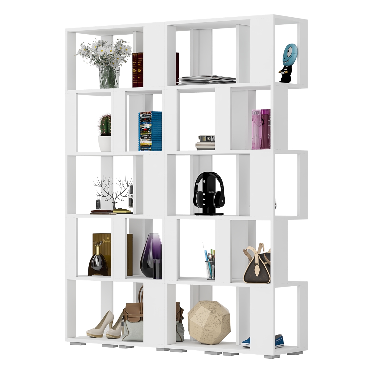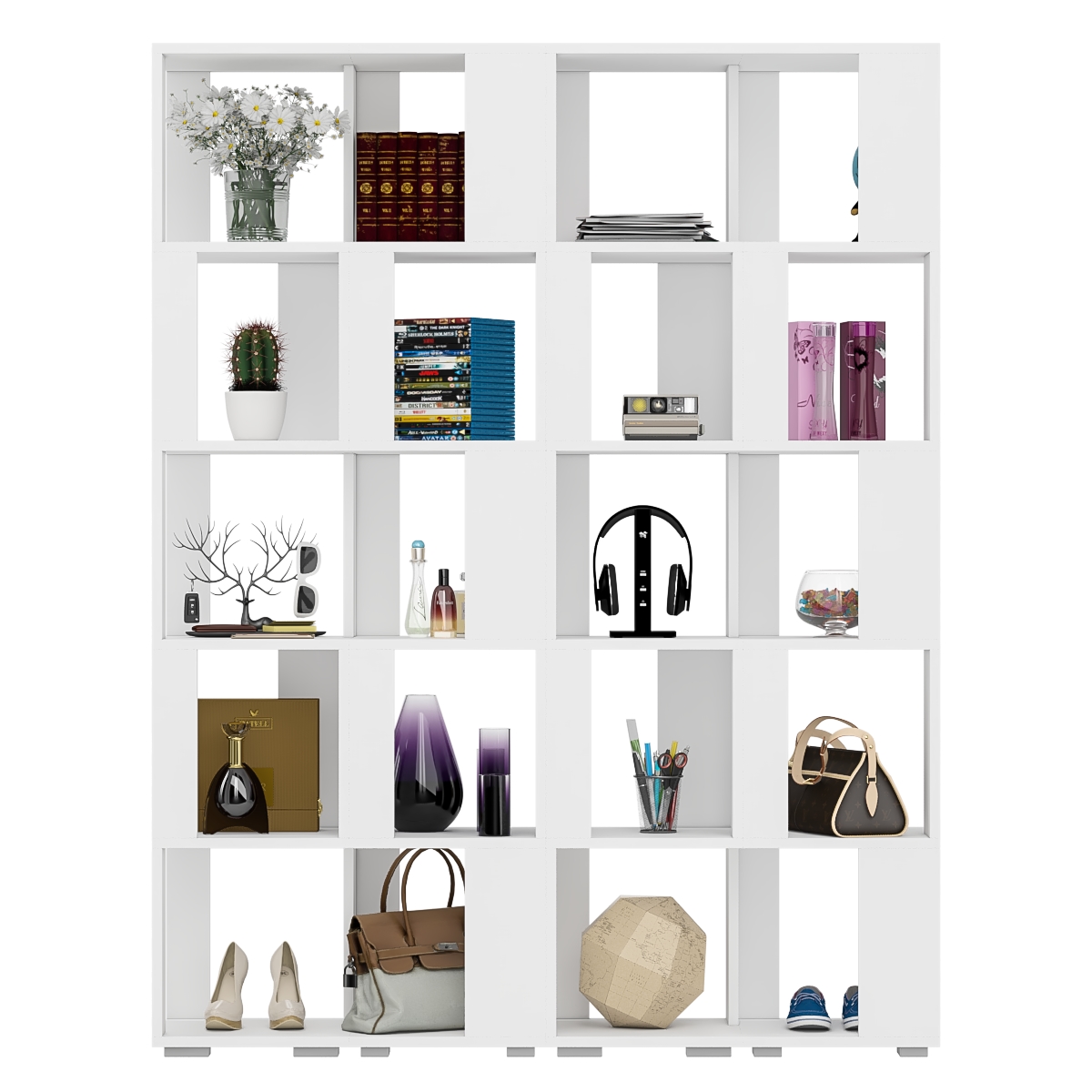 Комплект их четырех стеллажей, объединенных в единый блок, визуально максимально легкая с прекрасным доступом к каждой полечке, идеально подойдет и для книг и журналов и как стенд для поделок Вашего ребенка. Комплект конструктивно представляет из себя 5 ярусов с четырьмя полочками с доступом с четырех сторон. Комплект установлен на пластиковые опоры высотой 20 мм, защищающие покрытие пола от повреждений.